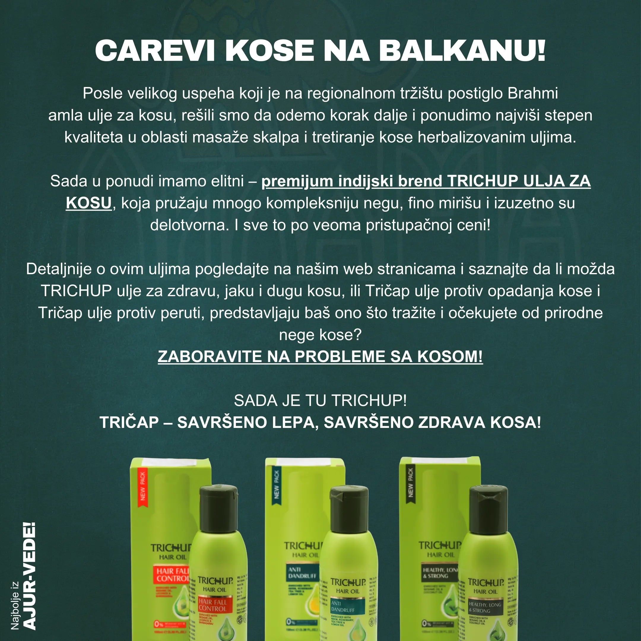 Autor VladaPosle velikog uspeha koji je na regionalnom tržištu postiglo Brahmi amla ulje za kosu, rešili smo da odemo korak dalje i ponudimo najviši stepen kvaliteta ..