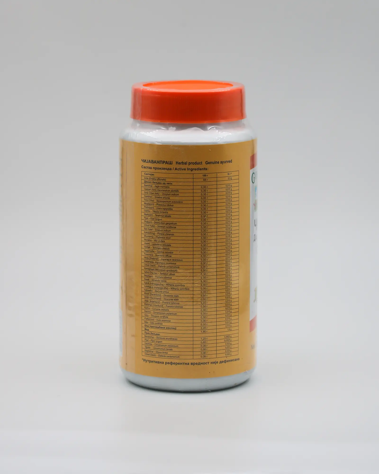 Imuni sistem i sistem za varenje: Plod amalakija je osnovni sastojak čijavanapraša. Ovaj plod je najbogatiji prirodni izvor vitamina C (30 puta više nego u pomorandži) i značajno jača imuni sistem i ubrzava proces izlečenja. Redovno uzimanje čijavanpraša jača varenje, upijanje i usvajanje hrane i uravnotežuje stomačnu kiselinu.